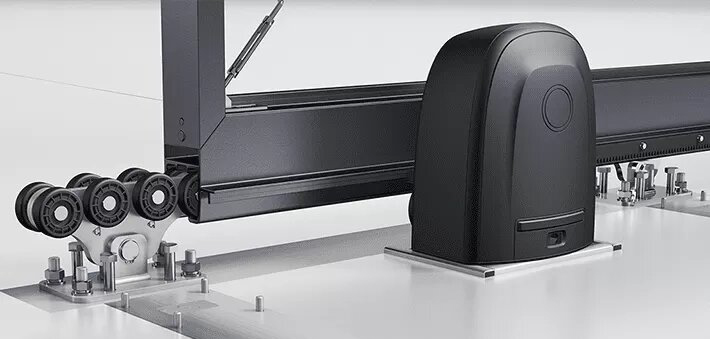 Предотвращает сход шины с роликовых опор и снижает нагрузку на шину, когда ворота находятся в закрытом положении. Декоративная крышка с демпфирующим элементом защищает опорный ролик от повреждений.